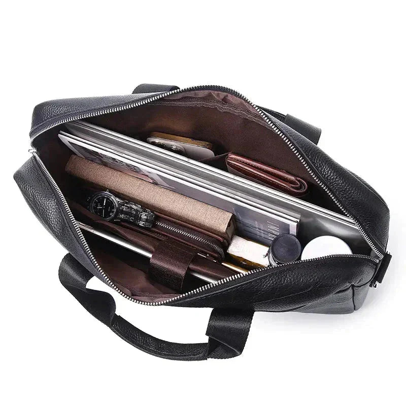 Feita com couro de alta qualidade, essa pasta executiva masculina exala sofisticação em cada detalhe, tornando-a o acessório perfeito para carregar seus documentos e dispositivos eletrônicos com estilo